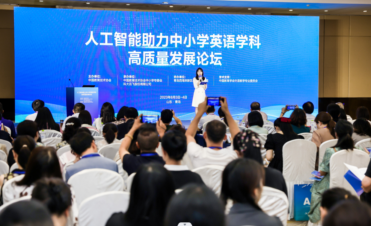 為貫徹二十大報告中提出的“推進(jìn)教育數(shù)字化”會議精神,落實《教師數(shù)字素養(yǎng)》標(biāo)準(zhǔn),8月3日至4日,由中國教育技術(shù)協(xié)會主辦、中國教育技術(shù)協(xié)會中小學(xué)專業(yè)委員會及科大訊飛股份有限公司承辦、青島西海岸新區(qū)教育和體育局協(xié)辦的人工智能助力中小學(xué)英語學(xué)科高質(zhì)量發(fā)展論壇在青島隆重舉行,本次論壇還特別邀請到中國教育學(xué)會外語教學(xué)專業(yè)委員會作為學(xué)術(shù)指導(dǎo)單位,旨在與全國各地英語骨干教師一起共研英語數(shù)字化教學(xué)。來自全國各地的近三百名行業(yè)專家、教研員、教師及相關(guān)從業(yè)者共同參與了活動。